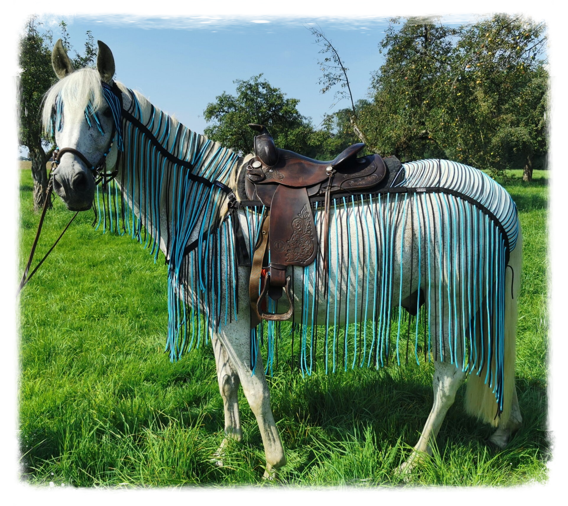 - Mohairgurte in verschiedenen Ausführungen - Mohair-Vorderzeug - Fransenfliegendecken in einer großen Farbauswahl - Knotenhalfter mit farblich passenden Führ- und Arbeitsseilen - Knotenhalfter mit Verzierungen - Halfter, Zäume und Zügel aus farbigen Biothan und einiges mehr